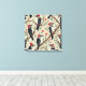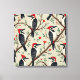 Esta es una impresión de tela estirada. Tiene un diseño de patrón de pájaros carpinteros.