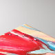 El cuadro presenta flores rojas vibrantes colocadas sobre un fondo abstracto de color claro. Las flores, con sus pétalos rojos audaces, destacan de manera prominente, añadiendo un sentido de calidez e intensidad a las obras de arte. Los tonos claros, como el beige, el crema o el pastel, crean un ambiente tranquilo y sereno. La naturaleza abstracta del fondo contrasta con las flores detalladas, convirtiéndolas en el punto central de la pintura.