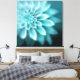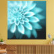 Un 100% de arte original con firma pintada a mano. Dispone de una única dalia en tonos turquesa, negro y blanco, colocada fuera del centro, pintada con un enfoque suave.