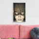 Impresión de imagen de tela estirada de cara femenina con mascara con título