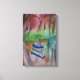 Paisaje acuático con hermoso dibujo en barco. Rosa, azul, verde - colores de la mañana - bonito cuadro romántico.