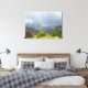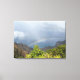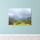 Esta impresión de tela estirada muestra una fotografía de un hermoso arco iris en las nubes, tomada en el mirador de Kalalau en la costa de Na Pali de la isla de Kauai.