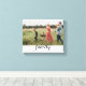 Esta elegante impresión de lienzo presenta un hermoso tipo de letra de guión grabado "familia" sobre el nombre de su familia en un moderno y elegante emparejamiento de fuentes. Tu foto familiar favorita llena el fondo. Hace excelentes regalos para los miembros de la familia durante todo el año.