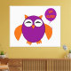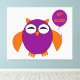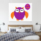 Esta impresionante impresión de lona muestra un búho lindo con los ojos cerrados como si estuviera durmiendo y unas garras bonitas. Su cuerpo es morado y sus alas, orejas, garras y pico son naranjas. El búho sostiene un globo con "Halloween feliz" escrito en él y está listo para el fiesta.