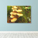 Hypholoma fasciculare hongo (también conocido como azufre, azufre o leñador agrupado) creciendo a través del musgo en un tronco de árbol