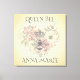¡Poseer una impresión personalizada de tela estirada! Con una medición de 24"x24", esta muestra una estrafalaria chic de una abeja de corona y un diseño de corazón floral donde se puede personalizar el texto superior e inferior como se desee. Hay diferentes tamaños disponibles.