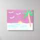 Este lienzo envuelto está diseñado con una escena insular al atardecer bajo un cielo magenta.