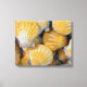 Arte de playa sobre la decoración de la pared de lona con una hermosa imagen artística de una concha de vieiras en esta colorida imagen de la vida. Decoran cualquier salón, dormitorio o jardín de forma tropical con un toque natural y le dan a sus paredes cierto carácter y estilo. Los colores son los tonos tierra, melocotón, rosa, beige, dorado y blanco.
