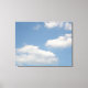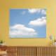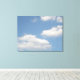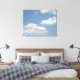 Esta impresionante impresión de lona muestra una fotografía de unas nubes de cúmulo blancas onduladas flotando tranquilamente sobre un hermoso cielo azul.