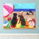 Impresión de lona de labradors de la brisa de verano. Funny Labrador Retriever en el diseño de pintura de la playa. El Labrador Negro y el Labrador Chocolate y el Labrador Amarillo están pintados en la imagen. Los perros felices y lindos Labrador Retriever se divierten mucho en la playa. El colorido y alegre paisaje veraniego con los Labs. Pintado por Naomi Ochiai de Japón.