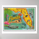 Un mapa vintage y clásico de postal de las atracciones del Estado de Florida. Lo formateamos en un papel de 24x30 pulgadas con un borde para un marco sencillo sin una estera en un marco estándar.