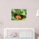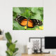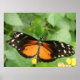 Este hermoso poster cuenta con una fotografía de una hermosa mariposa tropical. Esta especie se llama mariposa de ala larga del tigre (Heliconius hecale). Tiene hermosos parches de naranja en cada ala. El resto del ala es negra y está adornada con manchas blancas. Viene de Sudamérica. La fotografía fue tomada usando macrofotografía para obtener un resultado asombrosamente detallado.