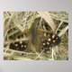 Este hermoso póster presenta una fotografía de una especie de mariposa británica llamada Madera Manchada (Pararge aegeria). La mariposa está sentada en el suelo. Tiene sus alas parcialmente abiertas revelando los ocelos y las hermosas marcas marrones y blancas que dan nombre a la especie.