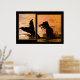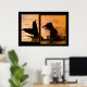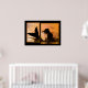 Impresión poster brillante de ilustraciones de manipulación fotográfica, que muestra la silueta de una sirena en el agua al atardecer. La impresión está diseñada para que parezca dos impresiones en una. Elige papel y un marco si quieres. La decoración de las paredes es interesante y elegante. Una gran pieza de conversación.