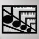 Poster de mi diseño de teclas de piano y notas llamadas "Piano Music".