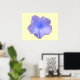Esta impresión muestra una fotografía de una flor de nasturcio. La foto ha sido pintada de forma artificial, lo que ha resultado en una impresionante flor de color azul pálido con tintes blancos y morados claros. El fondo es de color amarillo pálido.