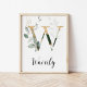 Agregue un toque de encanto natural al cuarto de su bebé con esta impresión de nombre de guardería de verde. Con delicado follaje y texto de nombre personalizable, es el decorado personalizado perfecto para una guardería serena y elegante.