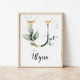 Agregue un toque de encanto natural al cuarto de su bebé con esta impresión de pared de nombre de vivero de verde. Con delicado follaje y texto de nombre personalizable, es el decorado personalizado perfecto para un vivero sereno y elegante.