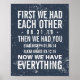 Nuestro original impreso es fácil de personalizar con su aniversario y los nombres y fechas de nacimiento de sus hijos. El diseño moderno de la tipografía vintage incluye las palabras "Primero nos teníamos el uno al otro, luego te teníamos, ahora lo tenemos todo" con espacios para tu aniversario de boda y dos cumpleaños de niños, en un fondo azul marino. ¿Tienes tres o cuatro hijos? Consulte nuestra tienda para ver una versión alternativa.