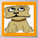 ¡Maravillosa impresión colorida de un perro de caricatura con ojos grandes! Fondo naranja con borde azul claro. Perfecto para los amantes del arte pop y el arte infantil. Viene de gran tamaño. 23 para 23.