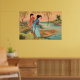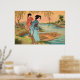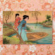 A primera vista, esta imagen tiene la apariencia de una impresión en madera. Tras un examen más detallado, se aprecia el elegante patrón de puntos de un cromolitograma de piedra de la época victoriana. Los suaves colores y el diseño ilustran una escena junto al lago japonés con dos geishas y un barco. Los sauces y el cielo del albaricoque enmarcan la colorida imagen. Es un diseño encantador para la decoración, la correspondencia personal y los accesorios.