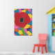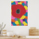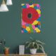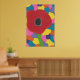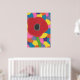 Arte de medios mixtos contemporáneo. Negrita y colorida, con una gran amapola en forma de vidrios.