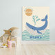Poster de arte en la pared de la guardería de ballena azul océano. Este lindo mensaje de ballena y motivador para "hacer tu propio chapoteo" es una manera divertida de incorporar la vida marina en una guardería infantil o la decoración de un dormitorio o salón de juegos para los niños. Con un ilustracion de una ballena azul en un mar ondulado, se puede personalizar el nombre para personalizarla. Este diseño se puede encontrar en la colección de decoración de la guardería Blue Ocean Animals de la bella tienda de abstractos. (© diseño artístico bellamente abstracto)