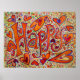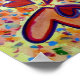 La palabra "Happy" está pintada en un naranja de color marrón claro sobre un fondo de arcoiris. Corazones de diferentes tamaños se cruzan y flotan como mariposas alrededor del texto. Esta pintura también viene en versión purpurina.