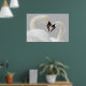 Nuestra impresión poster muestra una fotografía original de dos hermosos cisnes blancos salvajes. Los cisnes miran atentamente a los ojos de los demás, con sus largos cuellos elegantes inclinándose unos hacia otros. La hermosa y romántica pareja de cisnes fue fotografiada en Hogganfield Loch en Glasgow, Escocia, Reino Unido.