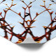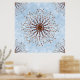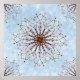 Un diseño de mandala creado a partir de fotos de extremidades de árbol de invierno desnudas contra un cielo azul con nubes blancas brillantes. En el centro, la promesa de la luz solar de primavera está por venir.