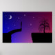 Dibujo de un hombre de pie sobre un puente roto, mirando a través del golfo donde está un solitario sauce. En el cielo detrás de él están la luna y las estrellas en un cielo azul oscuro, que se desvanecen en el otro lado del cielo por el comienzo del amanecer. Un ilustracion de las emociones de esperanza, desesperación y soledad a medida que llega al final del camino y encuentra el camino intransitable.