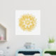 Esta hermosa huella de arte cuenta con un verdadero ilustracion de flores de Mandala grabado en relieve de Relieve metalizado dorado. Perfecto para un estudio de yoga o un espacio de meditación.