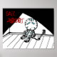 Triste robot pequeño se sienta solo, conectado a la pared. Un diseño divertido para cualquier habitación. El diseño incluye robots dibujados en tinta y coloreados digitalmente. Obra de arte original de Sunny Copyright 2011