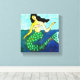 Mi divertida pintura digital abstracta de una sirena impresa en un lienzo envuelto en galería