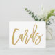 Impresión boda que dice "Tarjetas" en oro en ambos lados.