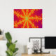 Esta impresión de colores vivos muestra una imagen fractal que recuerda a una tormenta en Venus. Tiene un fondo naranja brillante con líneas amarillas brillantes que salen del centro que parecen pernos de fuego. En el centro de cada rayo hay una línea azul que me recuerda a una vena que da como resultado el título Tormenta Venosa.