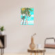 Tema impreso para viajes con cielo azul y palmeras de coco de una fotografía tomada en Fiji. Tema de la escapada de las islas tropicales. Vibra de vacaciones de verano.