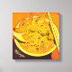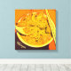 Afiche de viajes de un tazón humeante de sopa de laca de gambas de Malasia en el sudeste de Asia. colores vivos naranja y amarillo para un viaje moderno inspirado en el foie gras con poster de ambiente retro para su casa o cocina.