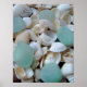 Algunas cristaleras de color verde claro están rodeadas de una bonita colección de conchas blancas de agua.