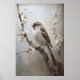 Impresión del bosque de primavera de gorrión, arte de guardería de pájaros rústica