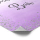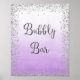 Impresión poster para el cartel boda de la barra burbujeante con diseño falso purpurina plateado y fondo de color púrpura oscuro.