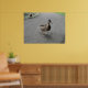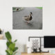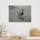 Esta impresión muestra una fotografía de un divertido pato caminando por un camino de concreto. Este pájaro descarado había salido de un estanque y estaba en la búsqueda de algo de pan en un parque tranquilo.