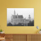 Foto en blanco y negro del Castillo de Neuschwanstein en Alemania.