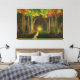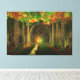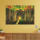 Una gran sala excavada en el lado de la colina, y a lo largo de cada pared una hilera de árboles. En el extremo opuesto una bahía poco profunda con un techo abovedado, y un pequeño arroyo que tintinea por la pared como una fina cortina delante de ella. En la bahía una mesa y dos vasijas, que brillan con una luz dorada y verde. La combinación de las dos luces es como el sol de verano brillando a través de árboles jóvenes. Los árboles también brillan, cada hoja delineada con luz, verde, dorado y rojo.