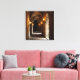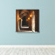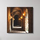 Esta impresión en lienzo representa un oscuro pasillo de castillo iluminado por el resplandor de la luz de las velas.