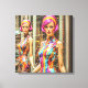 Esta impresión futurista en lienzo representa los reflejos de un maniquí realista en un escaparate.