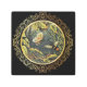 Abeja vintage moderna y mariposa en la telaraña de araña en un marco redondo de fibra de color victoriano de color dorado. El fondo negro se puede cambiar a un color de su elección.
