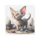 A cute and weird little cat with oversized eyes and ears stands surrounded by mysterious objects — including an egg, glass spheres, and old papers. This fantasy-style digital artwork combines realism and imagination, giving the kitten a magical and slightly surreal look. Perfect for cat lovers, fantasy art enthusiasts, and collectors of whimsical digital illustrations