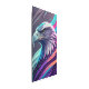 Retrato de águila estilizada en perfil de tres cuartos orientado hacia la izquierda, construido a partir de plumas geométricas estratificadas que parecen hojas aerodinámicas. El ojo ancla la composición cerca de la regla superior de los tercios, con un iris de acero-gris y un resplandor especular nítido; una pronunciada cresta de ceja intensifica la expresión atenta y enfocada. El pico enganchado se representa en planos limpios con un gradiente frío de cian a turquesa, lo que le da un toque metálico pulido. La estructura de plumas comienza en la corona con formas cortas y agudas (tonos lavanda y plata) y se adentra en una elegante curva S a lo largo del cuello. Las plumas se alargan y se transforman en cintas de fluido que recortan diagonalmente el marco. Estas cintas mezclan magenta, fucsia, violeta, cian y coral, con espesor variado y extremos cónicos que recortan el espacio, transmitiendo velocidad y profundidad. Pequeños salpicaduras y trozos de color detrás como partículas de movimiento. El fondo es carbón vegetal con rachas direccionales alineadas a la diagonal principal, amplificando el impulso. La interacción de tonalidades frescas (cian/blues) y acentos cálidos (magenta/coral) ofrece un alto contraste cromático, separando limpiamente la silueta del águila. El espacio negativo controlado en las esquinas superiores preserva la sala de respiración y aumenta el foco en la cara. Especificaciones de impresión metalizado: Producidas en aluminio a través de la sublimación de colorantes, donde los tintes se infunden en el metalizado para detalles afilados, color saturado y negros profundos. Elija brillo para el pop o mate de vidrio para una superficie refinada y sin brillo. Buques listos para colgar con una montura flotante para un aspecto moderno y sin marco. Resistente a los rayos UV y la humedad, ideal para estudios creativos, oficinas, salas de juegos e interiores contemporáneos. Disponible en varios tamaños, desde el acento hasta la instrucción bold.