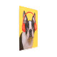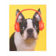 Esta linda foto de Getty Images muestra un Boston Terrier con auriculares rojos.